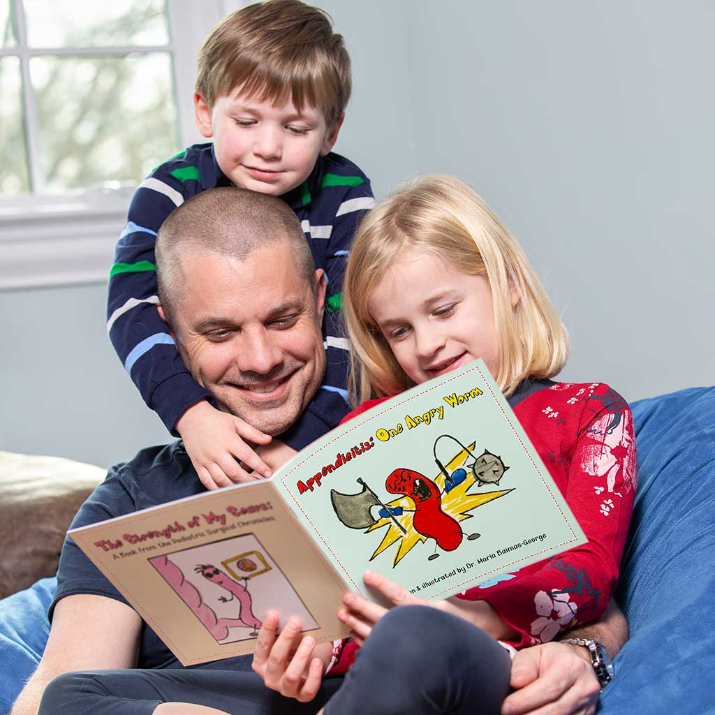 "As a general surgeon, I talk a lot about my work at home with my two boys, ages 5 and 7. They love to read and learn, and were especially excited to have these books as a window into the work that "Mommy" does when she is gone from the home. It was also a great starting point for discussions about challenges that other kids may face. Thank you for creating these books for kids and sharing them with the world!"